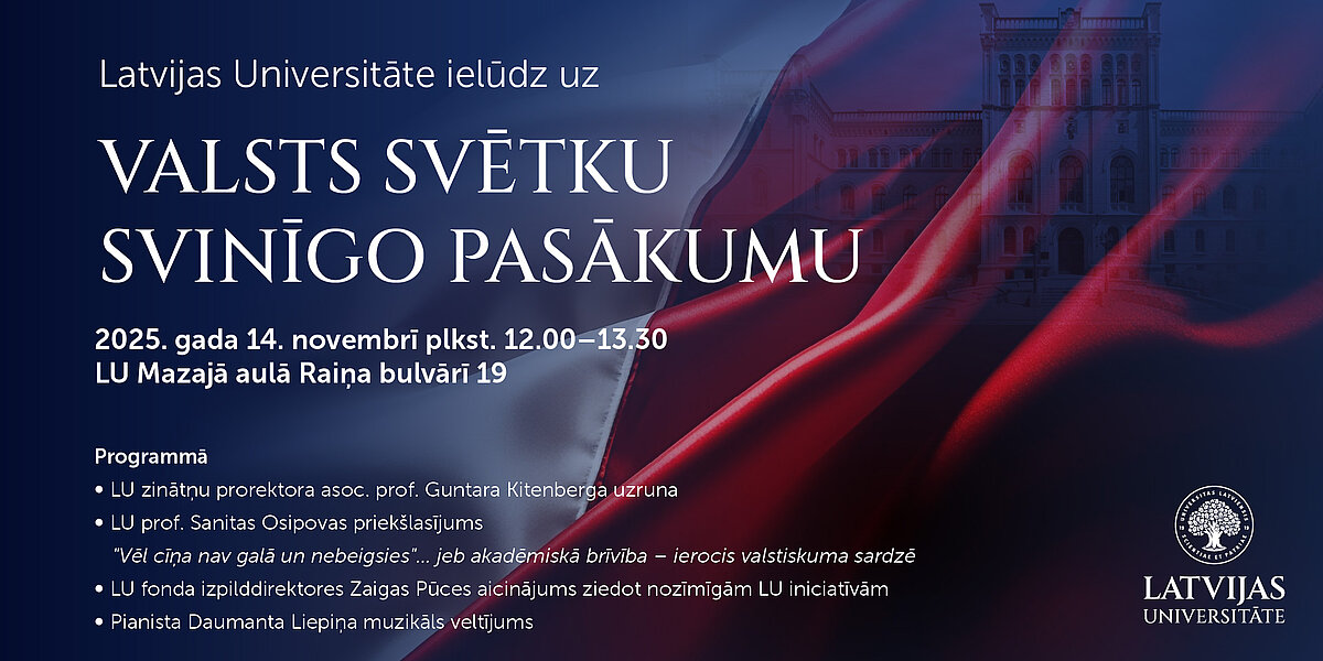 Latvijas Universitātes Valsts svētku pasākums ir iespēja vienoties pārdomās par Latvijas valstiskuma vērtībām, akadēmiskās brīvības nozīmi un Universitātes lomu mūsu valsts attīstībā.