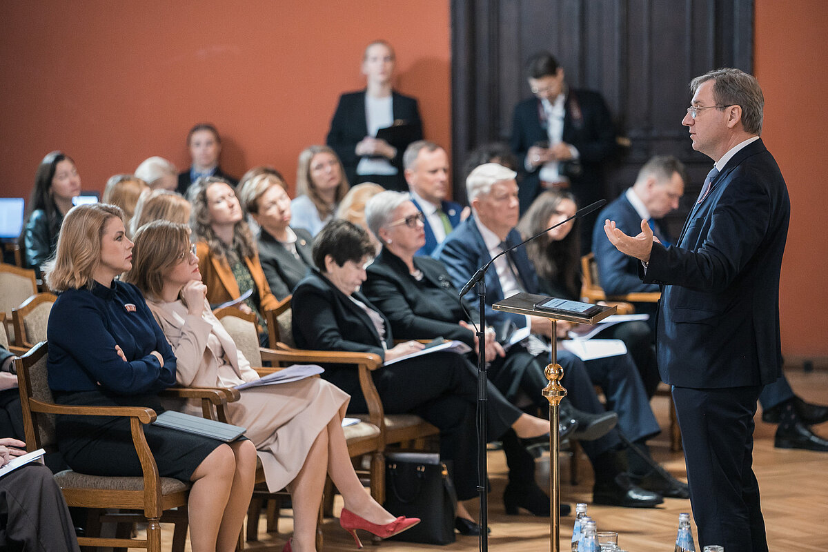 “Jaunās stratēģijas “Latvija 2050” izstrāde dod mums iespēju paskatīties tālāk par vienu Saeimas sasaukumu vai vienu valdību, ārpus politiskajām robežām un cikliskām debatēm. Tas liek uzdot pavisam citus jautājumus un vērtēt pēc citiem kritērijiem. Nevis par tiem, kas mūs šķir, bet par tiem, kas Latvijai patiešām ir nepieciešami ilgtermiņā. Tas nozīmē skaidras un drosmīgas izvēles par drošību, cilvēkkapitālu, demogrāfiju, ekonomikas modeli, reģionālo attīstību, mākslīgā intelekta revolūcijas ietekmi un valsts pārvaldību,” ievadot konferenci, teica Ministru prezidente Evika Siliņa.